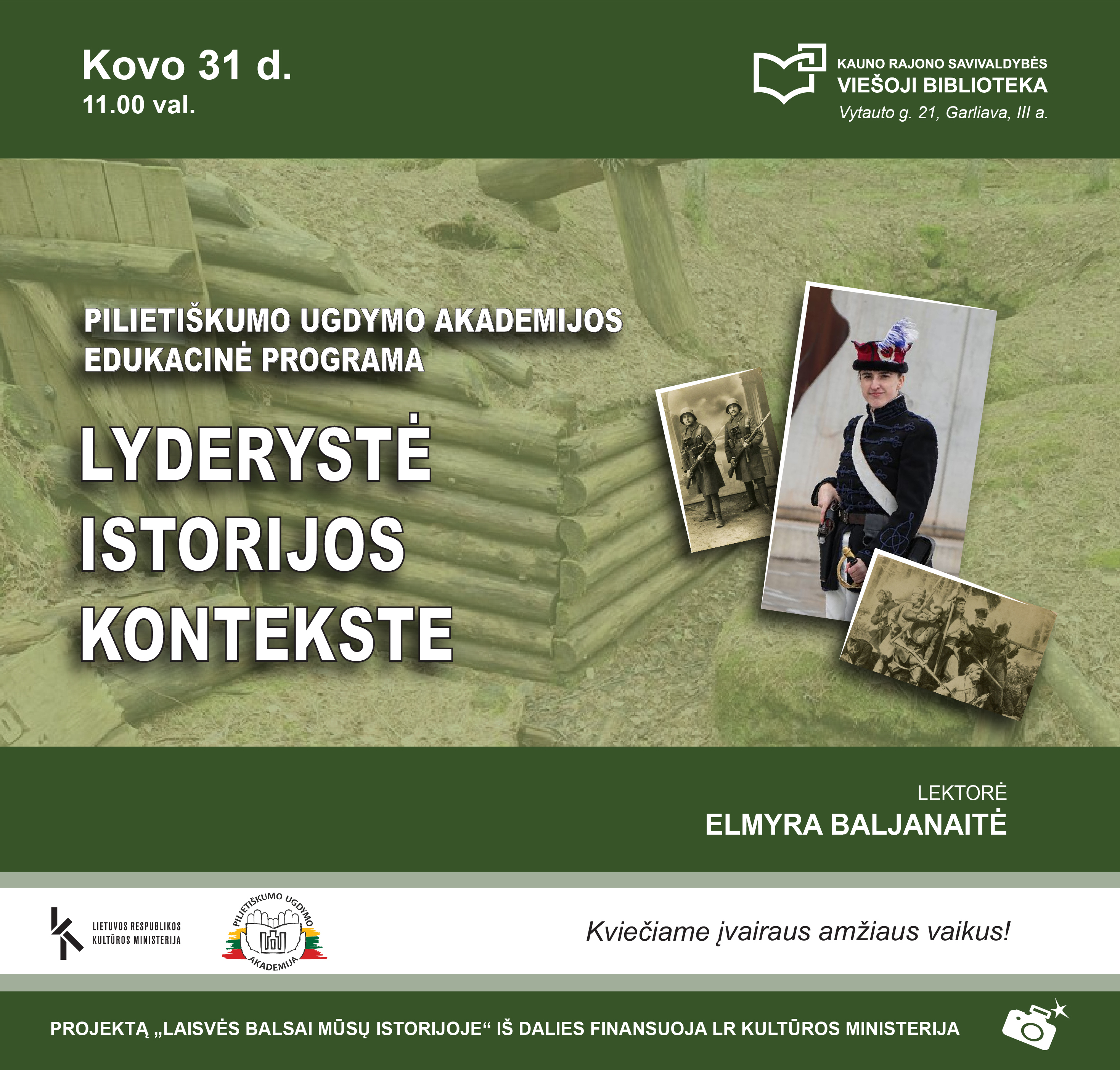 VŠĮ Pilietiškumo ugdymo akademijos edukacinė programa „Lyderystė istorijos kontekste“ – įvairaus amžiaus dalyviams pritaikyta patirtinė veikla, leidžianti gyvai ir įtaigiai pažinti Lietuvos laisvės kovų istoriją.