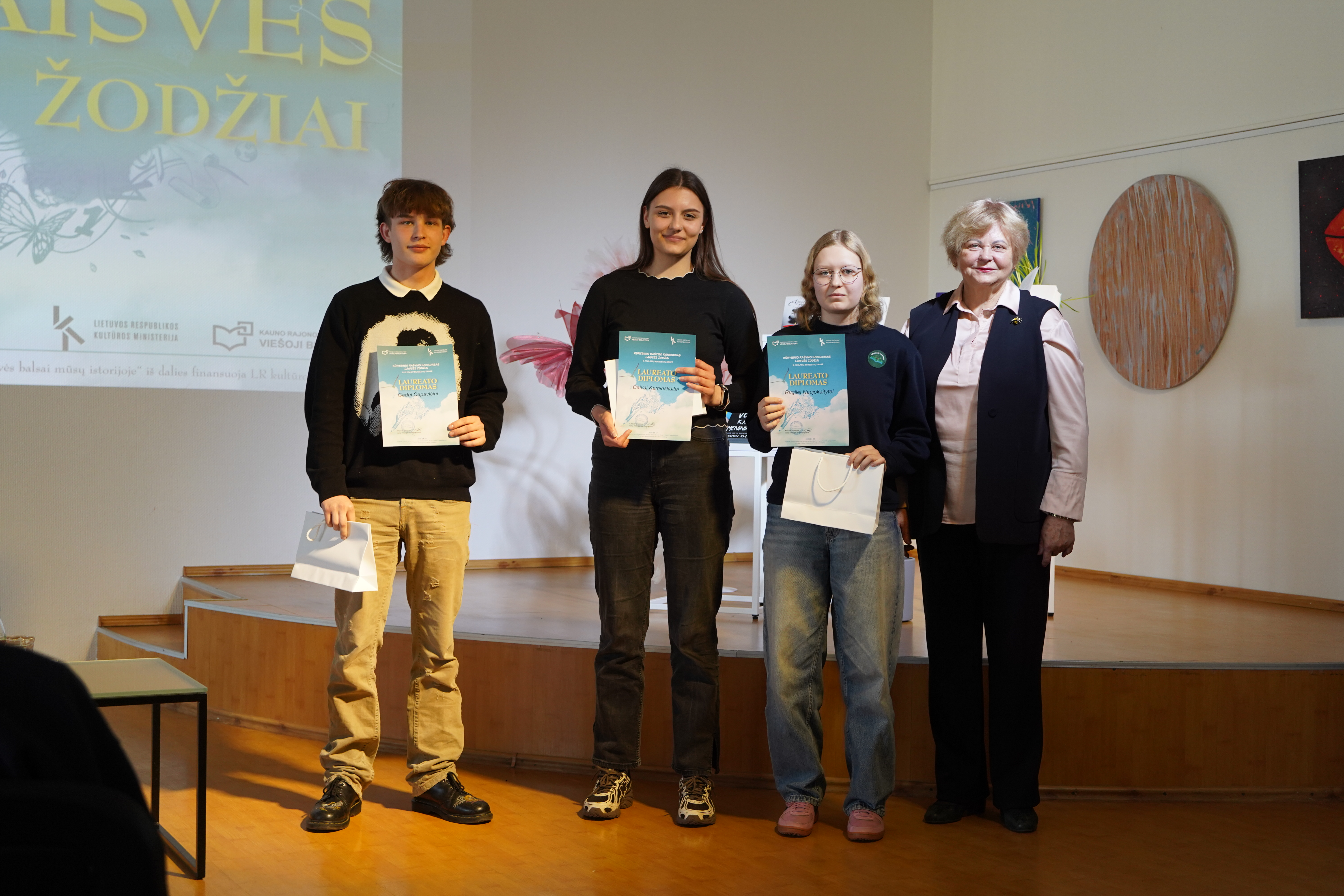 Visiems laimėtojams įteikti laureatų diplomai, knygynų tinklo dovanų čekiai ir kino bilietai.