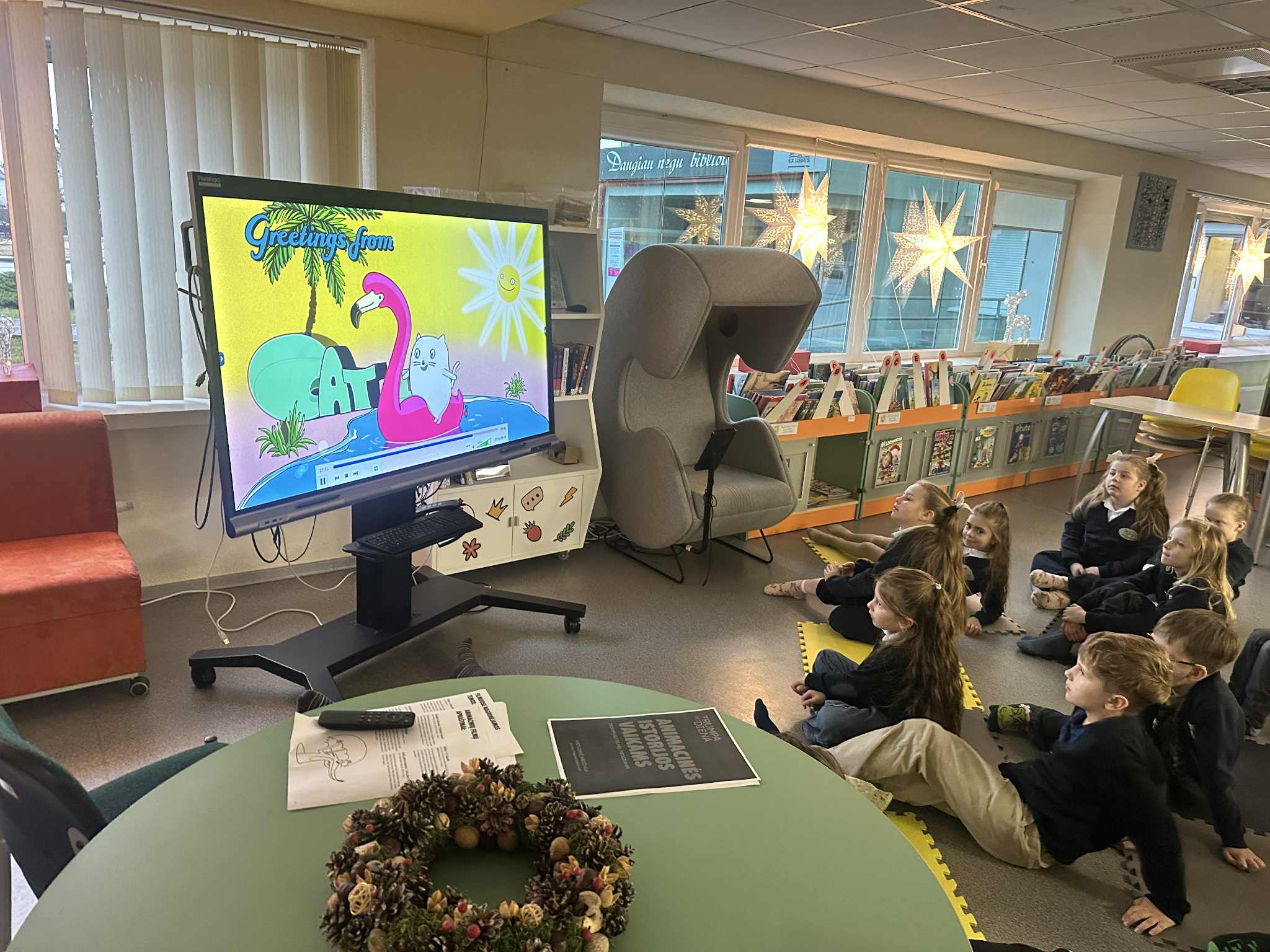 Kauno rajono savivaldybės viešojoje bibliotekoje apsilankė 20 moksleivių. Vaikai iš Kauno rajono Šlienavos pagrindinės mokyklos atvyko į specialią programą „Trumpa, bet diena: animacinės istorijos vaikams", skirtą tarptautinei trumpametražių filmų dienai paminėti.